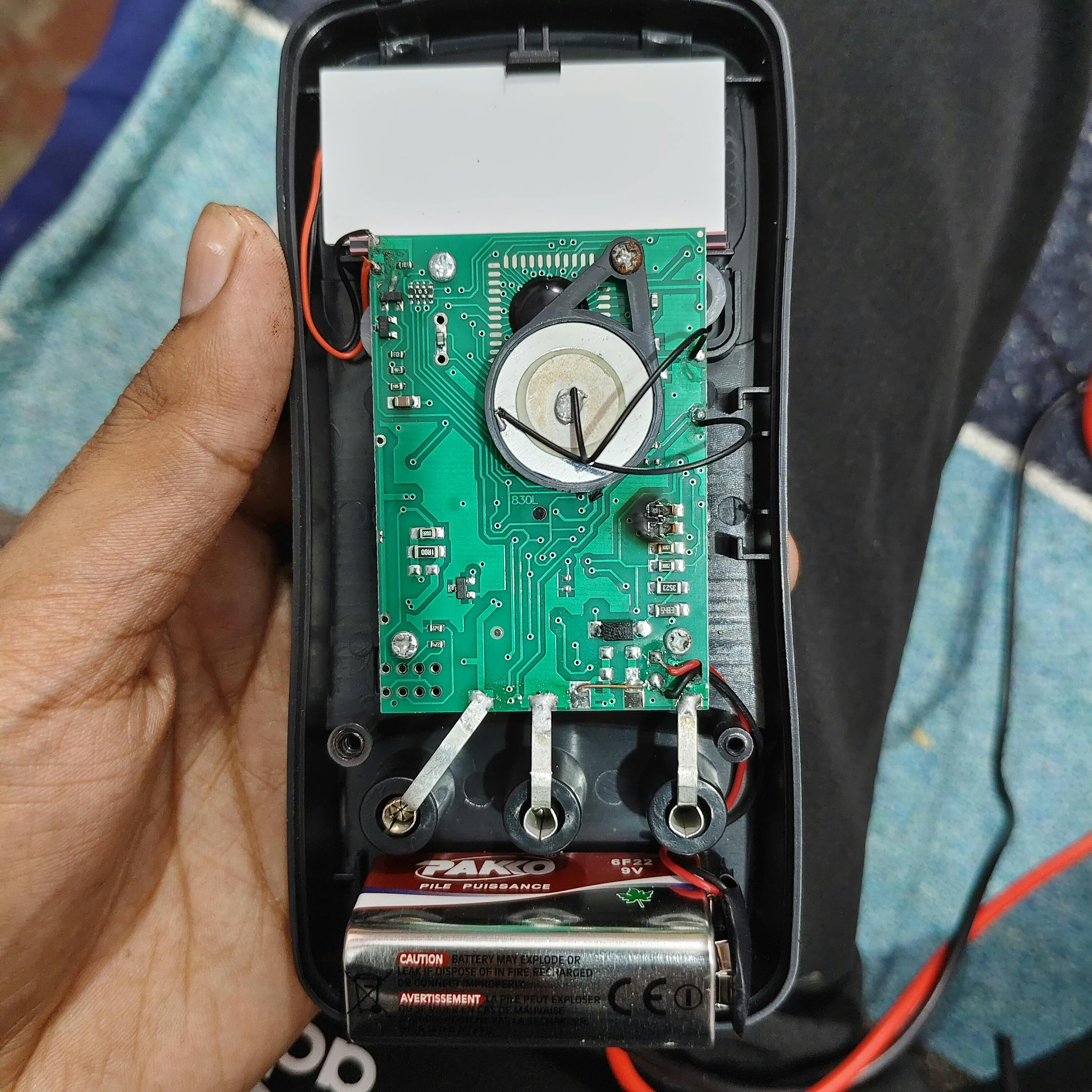 MAS830L is a 3 and ½ Digit multimeter that is very useful for general purpose electronic testing. This is a Battery operated Digital multimeter with proper insulation and clear display even in high light condition. This Multimeter is useful for AC/DC voltage testing, DC current and resistance testing as well as Diodes and Transistors can also be tested using this Multimeter. The package includes probes, battery and the multimeter.