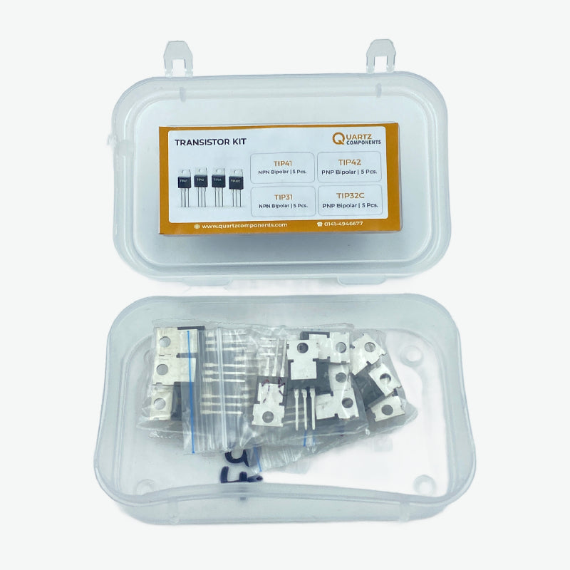 4 Set Bipolar Power Transistor Kit from TIP31 to TIP41 TO-220 Package - 20Pcs is a versatile transistor assortment designed for power amplification and switching applications, featuring commonly used NPN and PNP bipolar junction transistors ranging from TIP31 to TIP41, making it suitable for audio amplifiers, motor drivers, power control circuits, and general electronics repair projects.