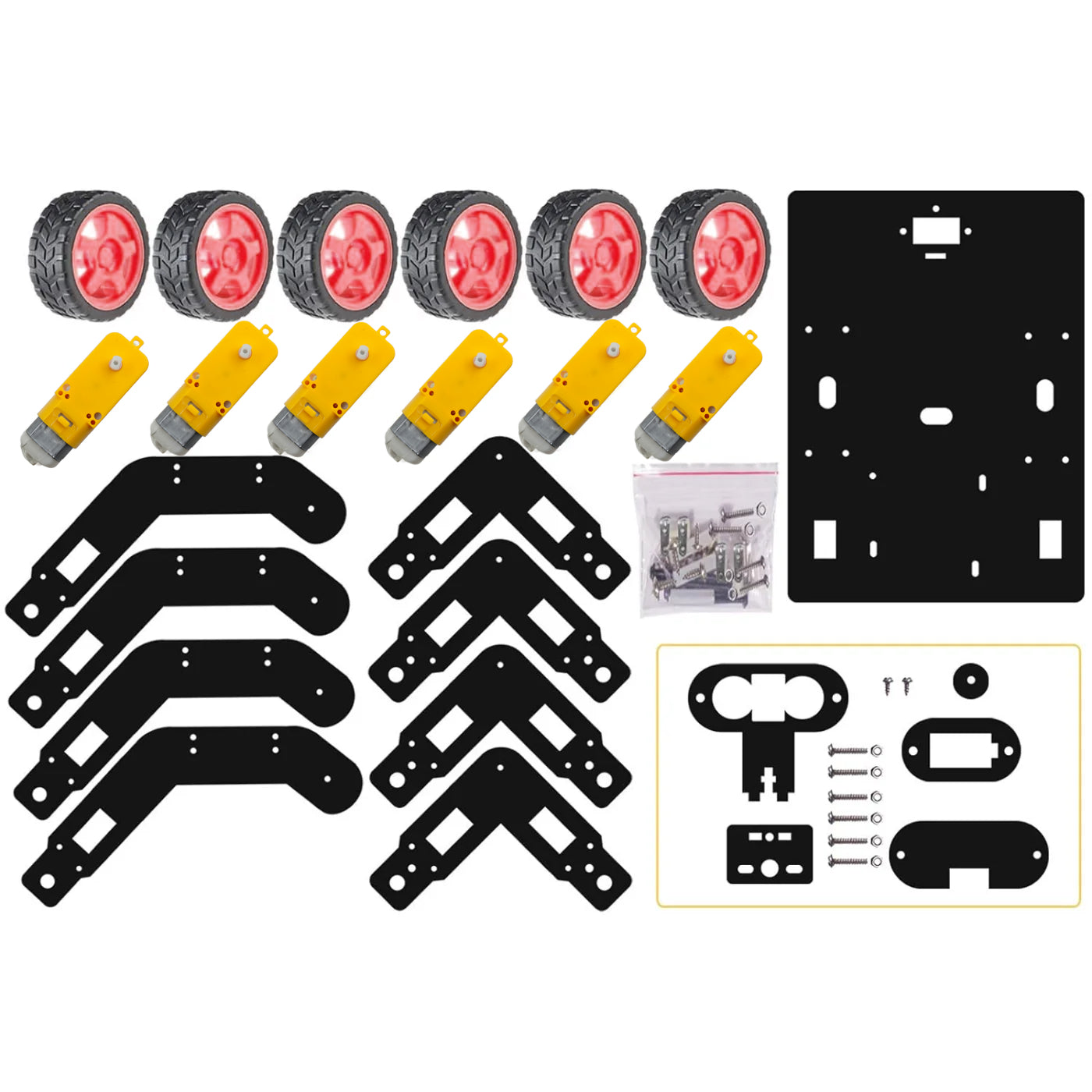 A DIY 6WD All Terrain Explorer Rover Robotics Chassis Kit ideal for mobile robotic platforms. A beginner-friendly robotics chassis kit designed to help hobbyists, students, and DIY enthusiasts build their own mobile rover platform. It’s perfect for hands-on learning in robotics, STEM education, and prototyping projects. This kit provides a sturdy and versatile base with six-wheel drive and rocker-bogie suspension, enabling smooth movement across various surfaces, much like a small exploration rover.