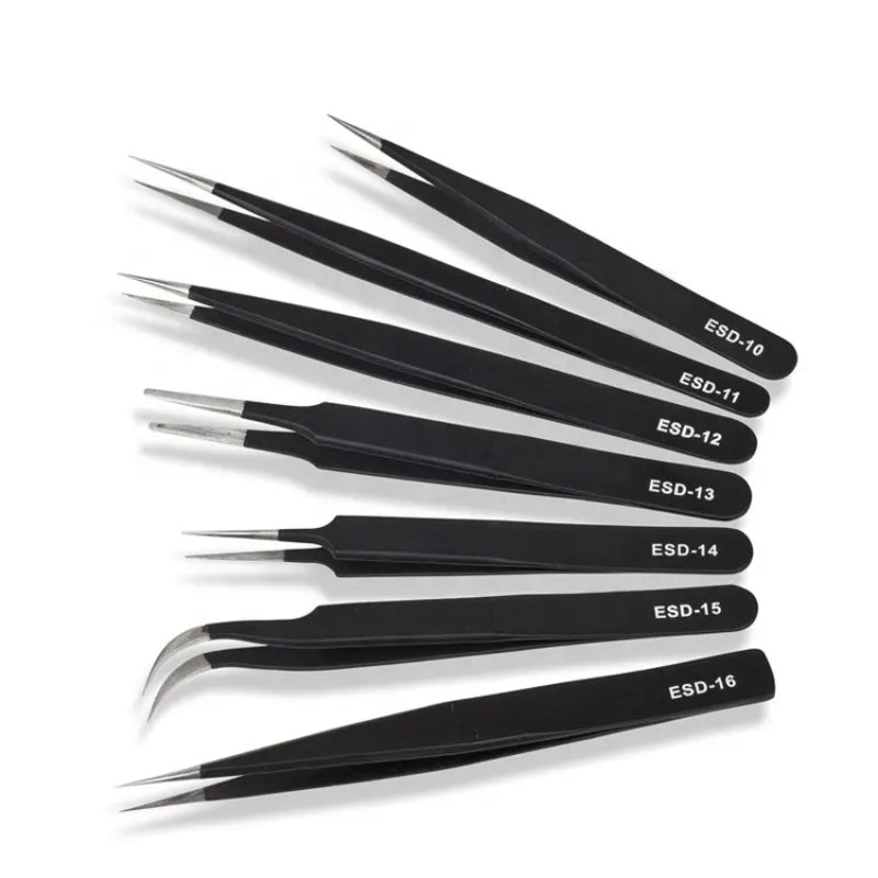 1 x ESD Anti-Static Stainless Steel Tweezers (Set of 7)