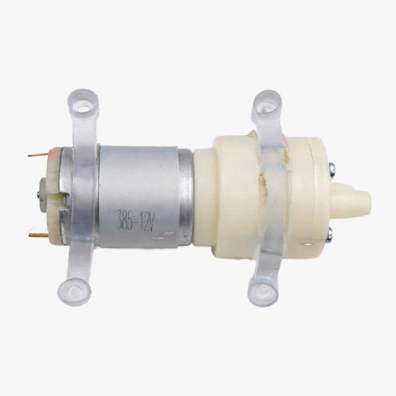 The R385 Mini Water Pump is perfect for various liquid movement projects like aquariums, automatic plant watering, or water features. It operates on 6-12V DC and can pump water up to 3 meters vertically and draw from 2 meters. It handles water temperatures up to 80°C and runs quietly when moving liquids. The pump also features a built-in filter and suction cup for easy installation on smooth surfaces.
