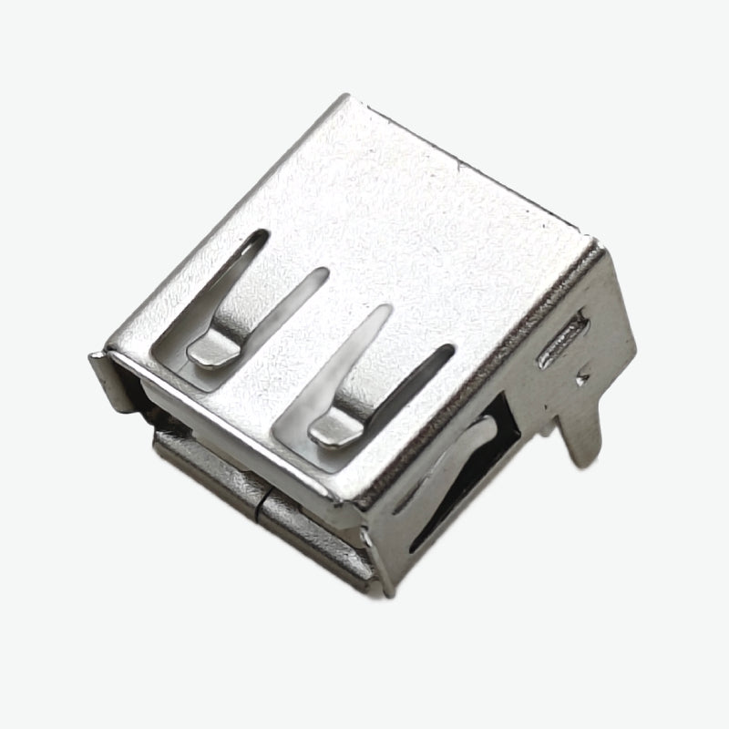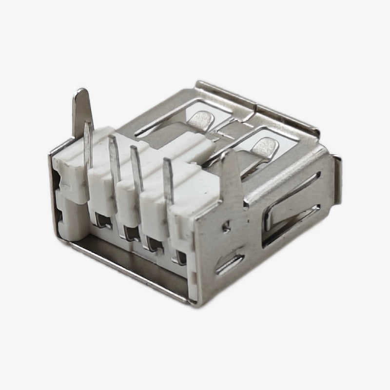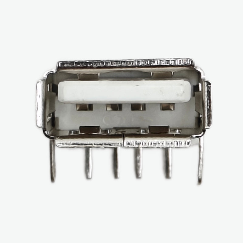 This USB Type-A female connector is used to establish a reliable USB connection for I/O devices, including: